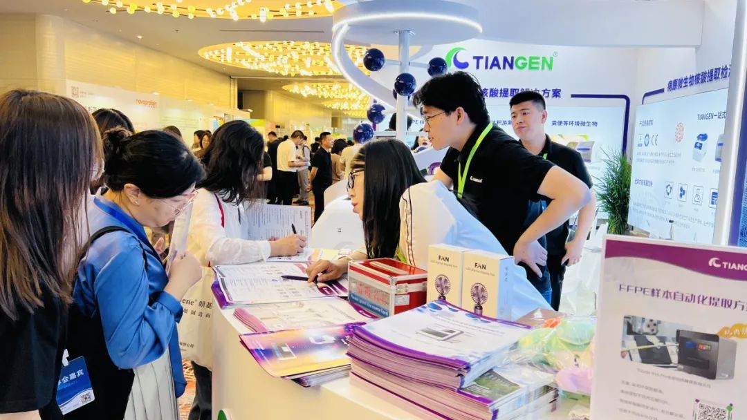 作为国内核酸纯化的领先企业,TIANGEN携病原微生物核酸提取检测解决方案与肿瘤样本核酸提取检测解决方案亮相参展。展会期间,TIANGEN展位吸引了众多专家和行业精英驻足。对展示的产品表现出浓厚的兴趣和高度的认可,积极与我们的技术人员交流探讨,纷纷表示希望未来能够进一步与TIANGEN建立合作关系。