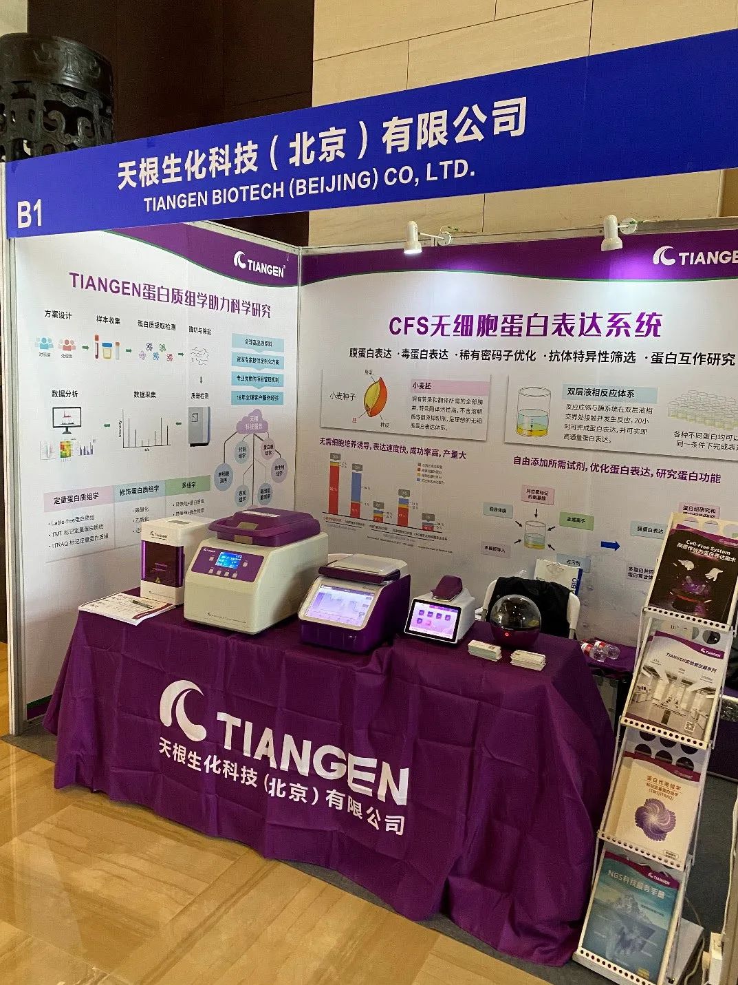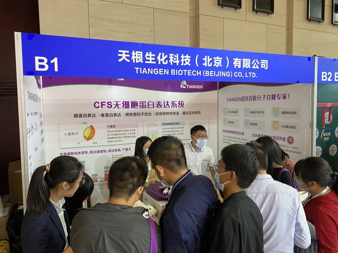 本次大会,TIANGEN不但带来非定量蛋白组学、标记定量蛋白组学、靶向/非靶向代谢组学、多组学分析等为不同需求的客户提供的组学技术服务和数据分析,更带来上下游研究必不可少的工具,包括样本前处理和其他实验所需的实验室小仪器、质粒提取和分子克隆试剂盒、CFS无细胞蛋白表达试剂盒等。在众多关注蛋白组学研究本身的展位中,TIANGEN独树一帜的关注到组学研究的上下游,提供完整解决方案,受到来自政府、企业和科研院校等不同类型客户的广泛关注和咨询。