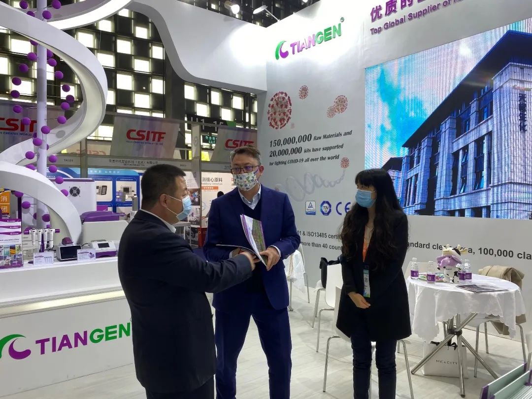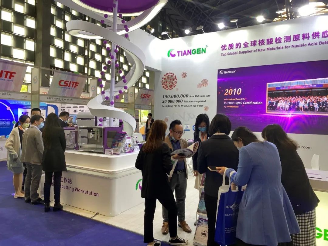 TIANGEN作为核酸纯化领域的龙头企业和业内广泛认可的IVD领域上游原料供应商本次携病毒检测整体解决方案亮相2021中国(上海)公共卫生防疫、防护物资展暨进出口交易会(上交会),进一步加深与海内外IVD企业客户的相互了解和合作,助力IVD企业在后疫情时代快速发展。