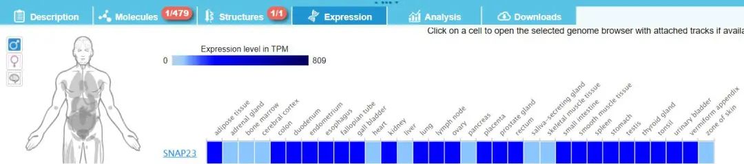 点击“Expression”可以看到感兴趣基因或通路基因在人类32个不同器官的表达量情况,有热图、箱形图等不同的展现形式,并可下载数据根据自己的需求进行编辑。
