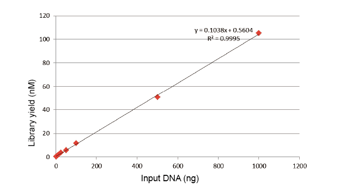 ■ 高文库转化效率, DNA 样本起始量可低至 1 ng。